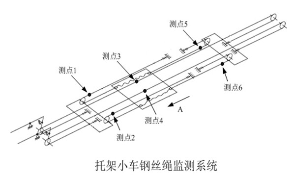 牵引小车钢丝绳系统共布置了4个测点,示意图如下:
