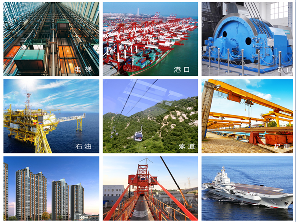 产品广泛应用于电梯、矿山、港口、石油、索道、电力、冶金、起重机械、船舶、工业、斜拉桥及军事等领域。在国内市场具有高份额的市场占有率,在国际市场远销多个国家。
