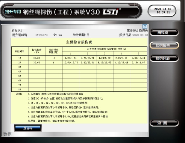 还可自动生成钢丝绳探伤报告和损伤列表,对钢丝绳进行全方位的评估。同时系统根据钢丝绳损伤程度具备三级报警模式,有效的守护钢丝绳安全。