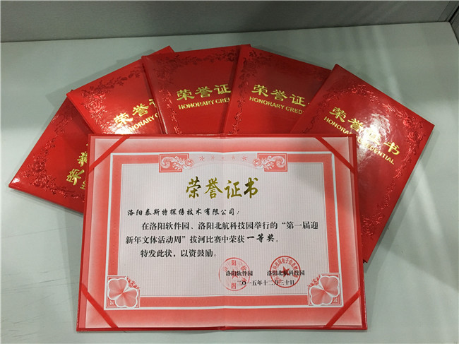 团结就是力量,实力决定成败。12月22日至30日在北航科技园举办的“庆元旦,迎新年”运动会上,洛阳泰斯特参加了所有项目并收获3个名、1个二、2个三名的骄人战绩,分别是拔河比赛名、篮球接力名、两人三脚接力名、乒乓球接力二名、双升比赛三名及电子贺卡制作三名。下面来欣赏下泰斯特团队的飒爽英姿。