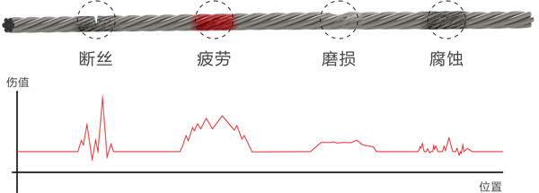 铁磁构件因表面破损会产生漏磁场,或因内部损伤和疲劳过度而产生局部磁场突变信息,泰斯特钢丝绳智能在线监控系统为智慧矿山提供7*24小时的钢丝绳安全监测,能够及时完整地提取异常信息,智能自动定量判别、准确评估钢丝绳安全状态。同时融入物联网等技术使安全监测信息从局部、分布式终端融入整体安全信息数据库,实现安全管理“无边界”互联互通。
